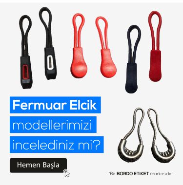 Fermuarlar üzerinde kullanılan plastik elciklerdir. Farklı model ve tarzlarda olan bu elcikleri fermuarlarınızda kullanarak farklılık oluşturabilirsiniz. Fermuar elcik modellerini aşağıdan inceleyebilirsiniz. Plastik elcik modellerimizde minimum sipariş miktarımız 1.000 adettir. Paketler 1.000 adetlik olarak size teslim edilir. Plastik elciklerimiz tüm fermuar modellerinde kullanılabilir boyutta ve ölçüdedir. Sipariş oluşturmak ya da bilgi almak için lütfen bizimle iletişime geçiniz.